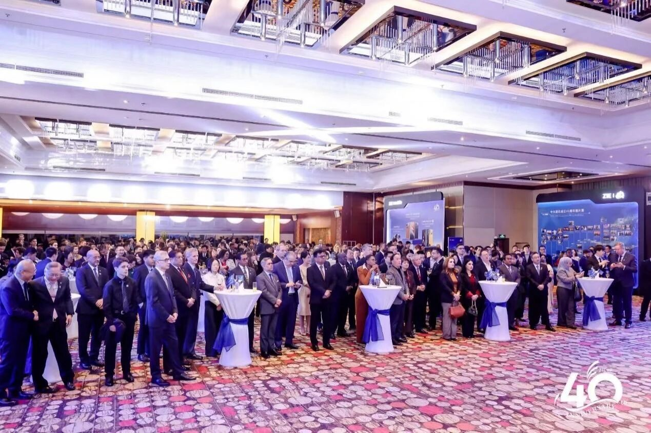 10月21日,中兴通讯成立40周年外事招待会在北京举办。来自80多个国家的300多名驻华使节、相关机构代表、国际组织负责人及合作伙伴出席了本次活动。