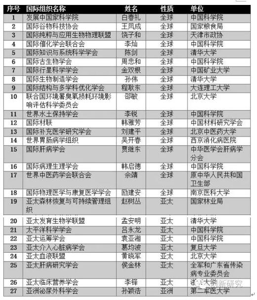 一、中国大陆学者在国际科技类学术组织任职的总体情况