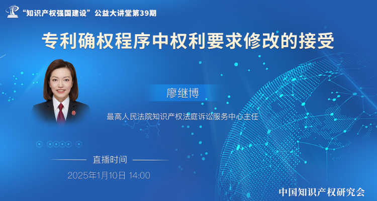 “知识产权强国建设”公益大讲堂第39期:专利授权确权程序中权利要求修改的接受